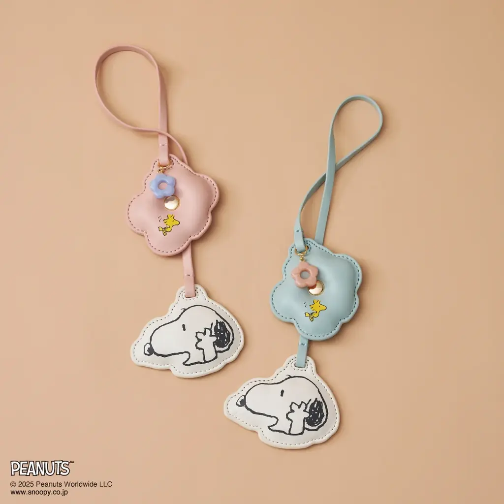 もう1種は透き通るクリア素材のお花モチーフに「ジョー・クール」と「ウッドストック」が寄りかかる愛らしいデザイン。価格はそれぞれ¥7,700と¥6,600です。ダブル付けやバッグのサイズに合わせたコーディネートが可能です。