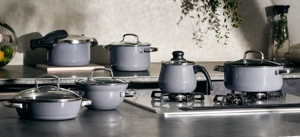 「フュージョンテック ミネラル」は約30種類の天然鉱石を使用したミネラル素材を採用し、WMF独自の製造プロセスで特殊鋼と融合させた一層化素材を実現しています。ドイツのクラフトマンシップによる品質と機能美が特徴です。