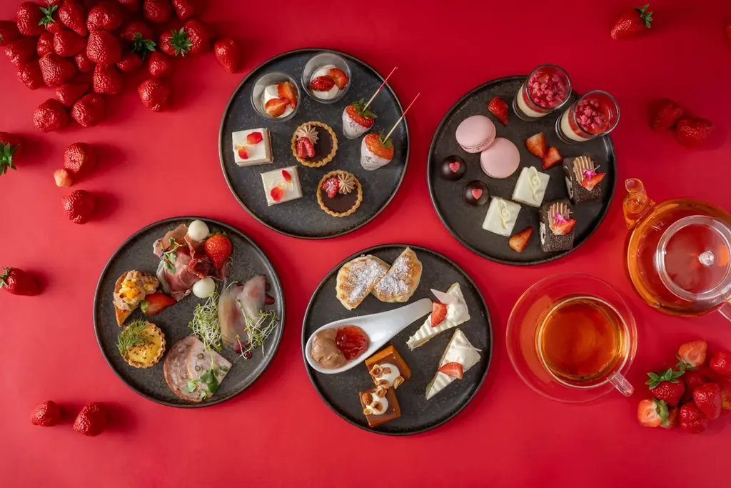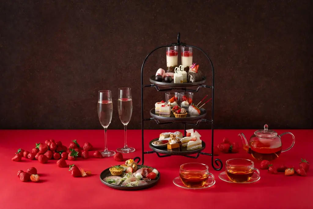 和の要素を取り入れたアフタヌーンティーを提供する。苺紅茶わらび餅など和スイーツに加え、京風いなり寿司や出汁巻き卵といったセイボリーが揃う。日本茶と合わせるペアリングも訴求点である。