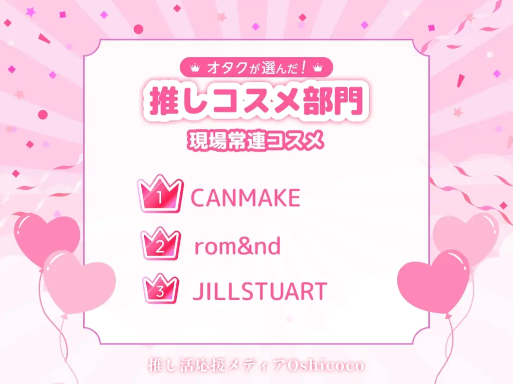 推し活の現場で実際に使われているグッズやコスメ、参戦服、プレゼントについてもランキングが発表されました。ここでは各カテゴリの上位ブランドと、支持される理由を整理します。