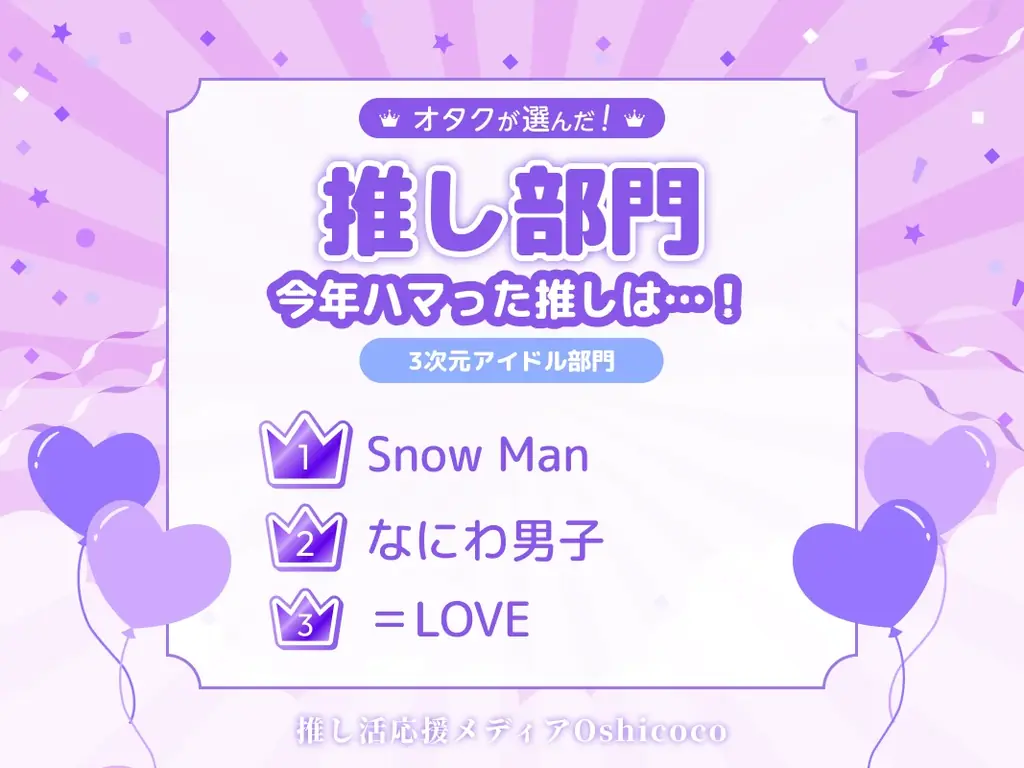 株式会社Oshicocoは、SNS総フォロワー10万人を擁する「推し活応援メディア」と推し活専門のオンラインストアを運営する企業として、2025年の一年間で特に注目を集めた“推し”を明らかにする企画として『推し・オブ・ザ・イヤー2025』を実施しました。投票結果は2025年11月4日、通称「いい推しの日」に合わせて発表されています。