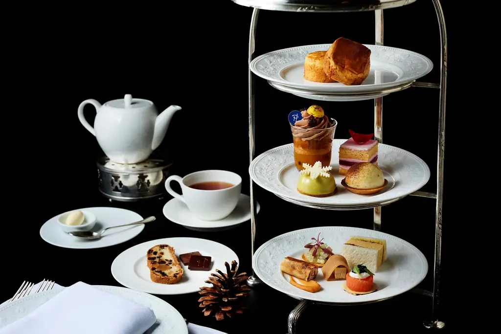 ピエール・エルメ・パリのスイーツを取り入れたホリデー限定アフタヌーンティーは、ザ・ロビーラウンジで提供されます。セイボリー、スコーン、スイーツの組み合わせにより季節感と華やかさを演出します。