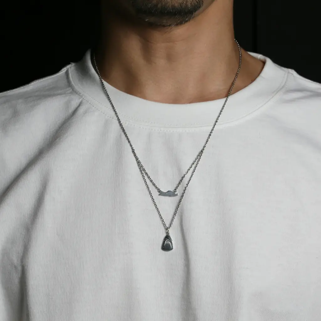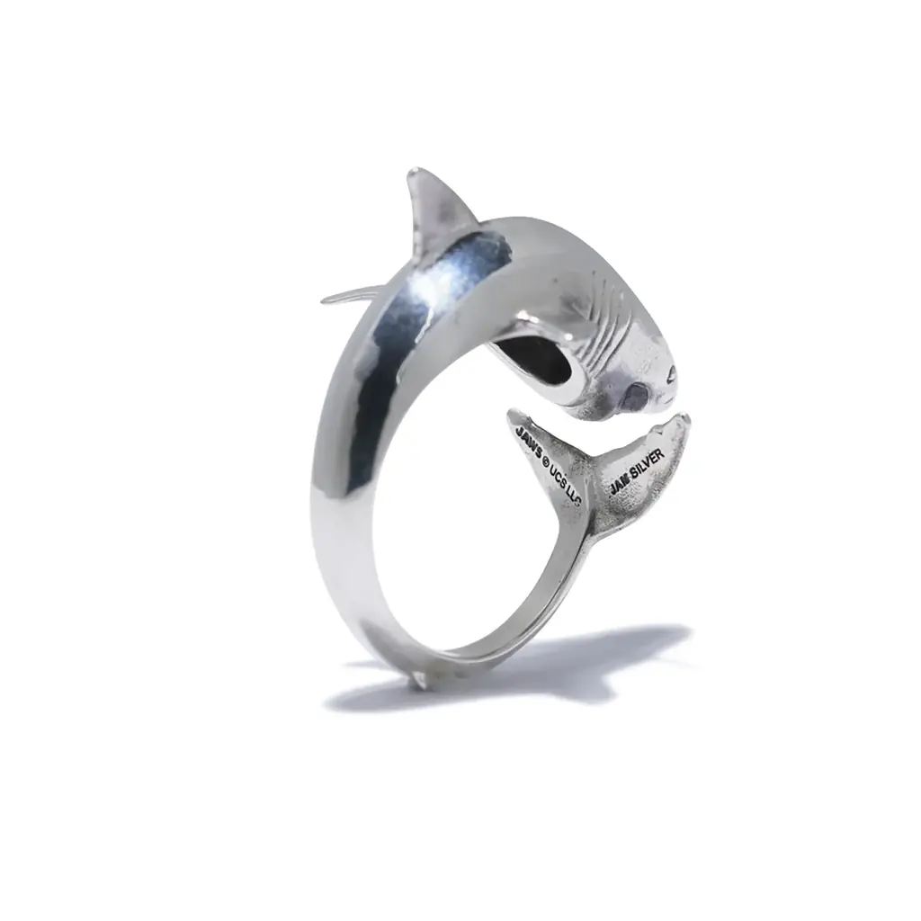 映画『JAWS(ジョーズ)』公開50周年を記念して、JAM HOME MADEが制作したコラボレーションコレクションは、当時の映画ポスターが持つ極度にシンプルで強烈なイメージをそのままジュエリーとアパレルへ転換した取り組みです。公開から50年を経ても色褪せないポスターのビジュアル性に敬意を払い、サメの存在感を際立たせるデザイン言語を保ちながら、アクセサリーとしての装着性や日常性にも配慮した商品群を揃えています。