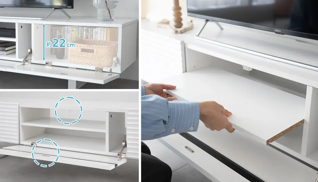 白の波目デザインが洗練された印象のTVボード【stria ストリア】が新登場!取り入れやすいミドルレンジの価格で高級感のある洗練された空間を実現 画像 8