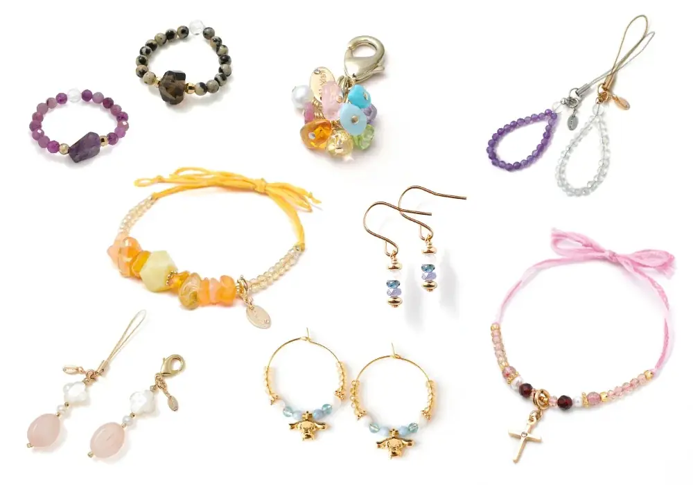 プチギフト対象は、ピアス、チャーム、ストラップ、アンクレット、リング、ミサンガといった日常使いしやすい小物類です。いずれも手に取りやすい価格帯に設定されており、天然石の美しさや持つとされるエネルギーを気軽に楽しめます。