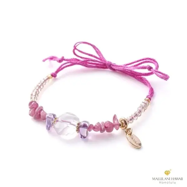 マルラニハワイの本店はオアフ島中心部のセンチュリーセンター11階にあり、眺めの良い落ち着いたサロンとして紹介されています。店内では、ブレスレット、アンクレット、ネックレスなど多彩なストーンアイテムに触れられるほか、生年月日とお願い事に基づいて石を選ぶ「バースデイオーダーブレスレット」など本店限定の特別なサービスが用意されています。