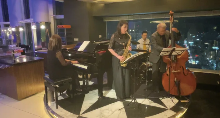 バータイムは17:30~23:00で、夜景とジャズ生演奏による落ち着いた時間が提供されます。グラス片手に音楽と夜景を楽しむ大人の時間として想定されています。