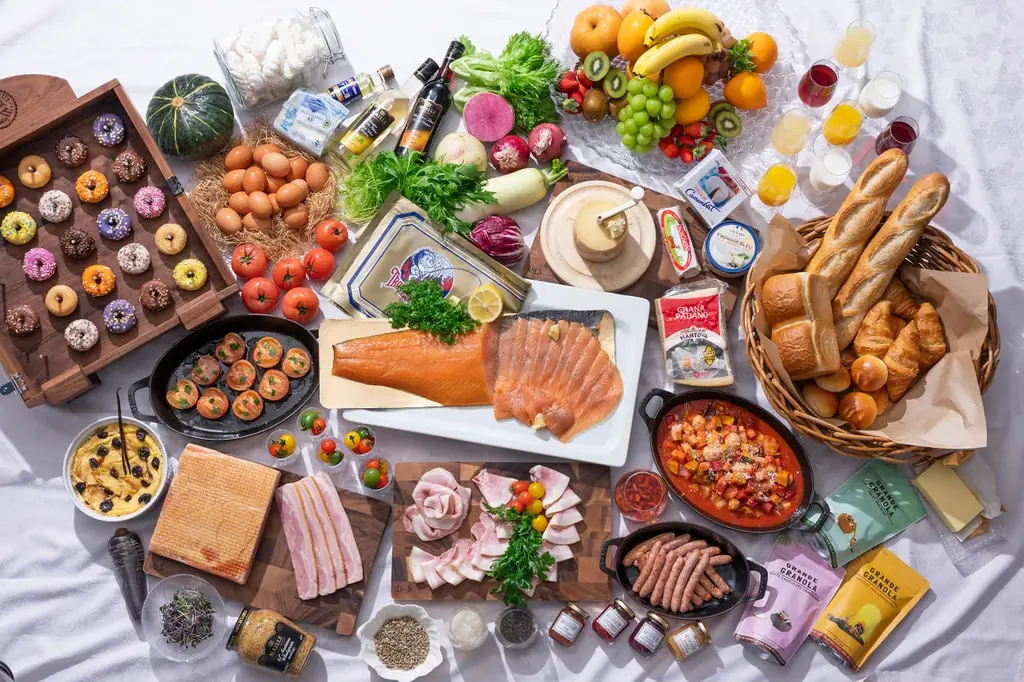 朝食は19階ダイニング&バー「アプロ―ズ」にて提供される「グランヴィア プレミアム・ブレックファスト」で、6:00~10:00(L.O.9:30)の時間帯に利用できます。6品のメインから1品を選べるセレクトメニューや、岡山県産食材を使った料理、豊富なブレッドとチーズコーナーが用意されています。