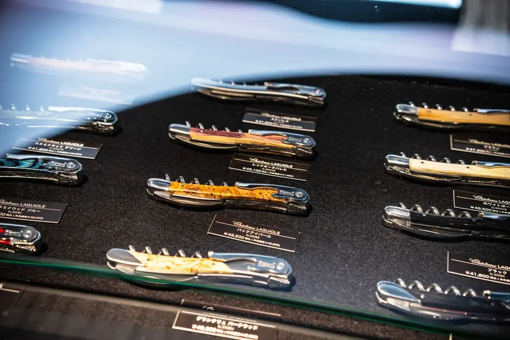 さらに、ワインを楽しむためのギア類を幅広く取り揃えます。具体的にはソムリエナイフ30種以上、デキャンタ20種以上の他、ワイン温度計、ワインオープナー、グラス用クロス、ワインクーラー、ラベルを保存するラベルメモリバインダーなど、多岐にわたるアイテムを展開します。