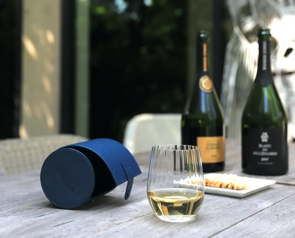 オープニング企画として、東海地区で初登場となる携帯可能なグラスセットを用意しています。旅行先や宿泊先でも本格的にお酒を楽しめるよう、コンパクトで安全に持ち運べる専用レザーケースと専用マイクロファイバークロスが付属します。
