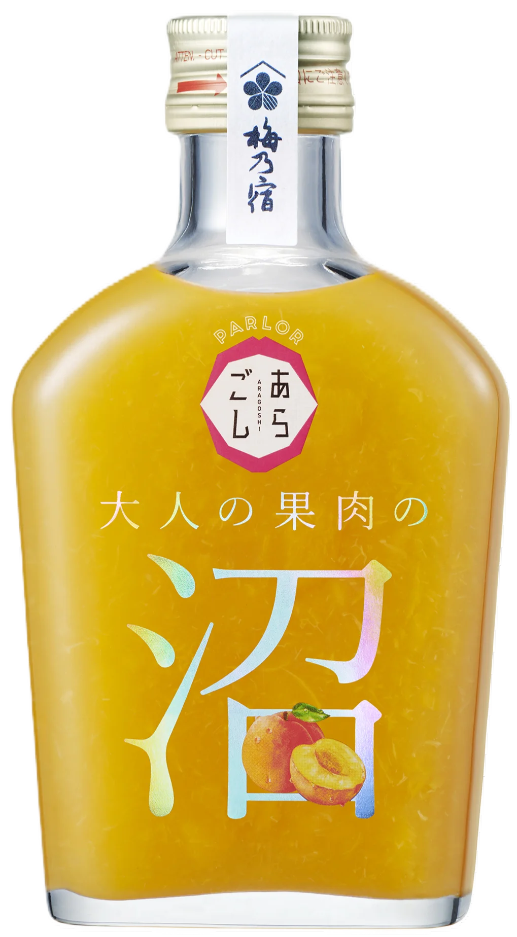 | PARLORあらごし 大人の果肉の沼「もも」 | 黄桃(ギリシャ産)、白桃(和歌山県産・あら川の桃)、すもも、スピリッツ、日本酒、糖類/ビタミンC。 | 5% | ¥3,980(税込)※2本セット/200ml×2本 | 梅乃宿酒造公式オンラインショップ |