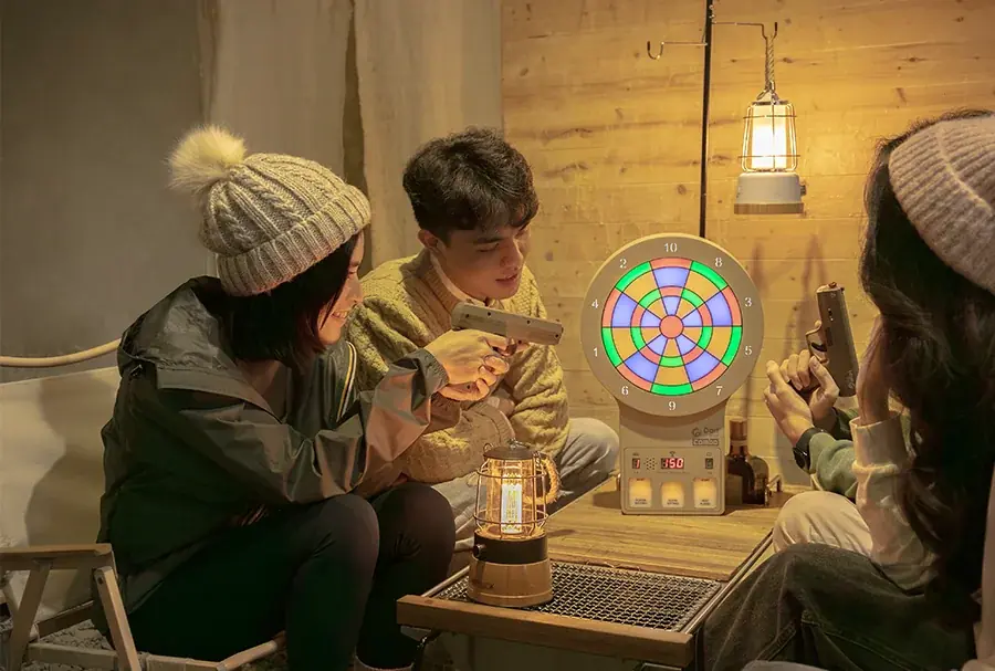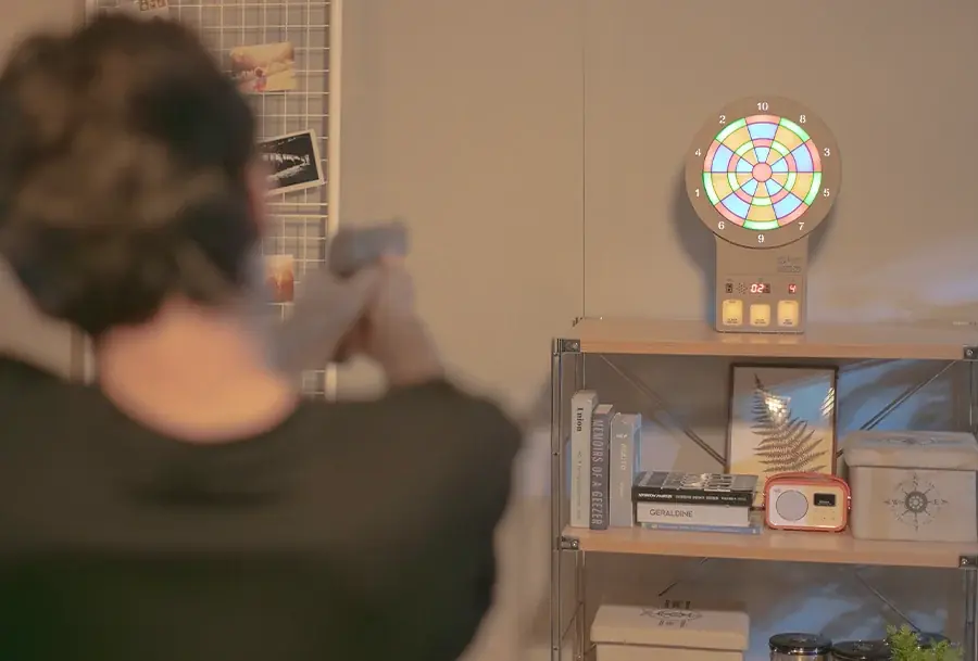 DartShot Comboは4種類のゲームモードを搭載し、家庭内でのパーティー遊びから個人の練習、さらには野外やサバゲーの練習用途まで幅広く対応します。操作性や携帯性も考慮され、電池駆動とAC駆動の両方に対応することで利用シーンの拡張を図っています。
