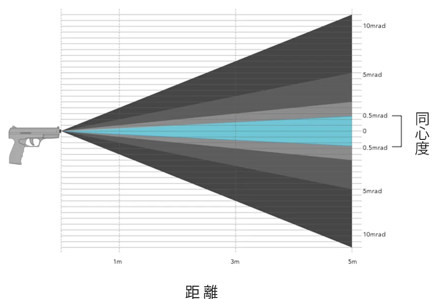 レーザーモジュール精度 ±0.5mrad(10mで約1.5mmの誤差)