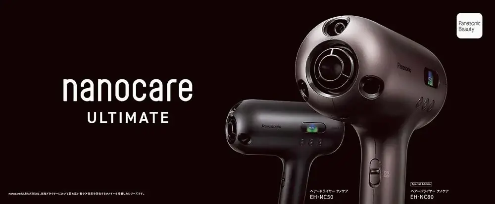 サロンに導入された代表的な機器は、Panasonic Beautyの最新ドライヤー『ナノケア アルティメイト (nanocare ULTIMATE)』を中心としたラインナップです。これらの機器は速乾性・うるおい効果・低温ケア・美髪テクノロジーを合わせ持ち、トリートメントとの相乗効果を狙います。