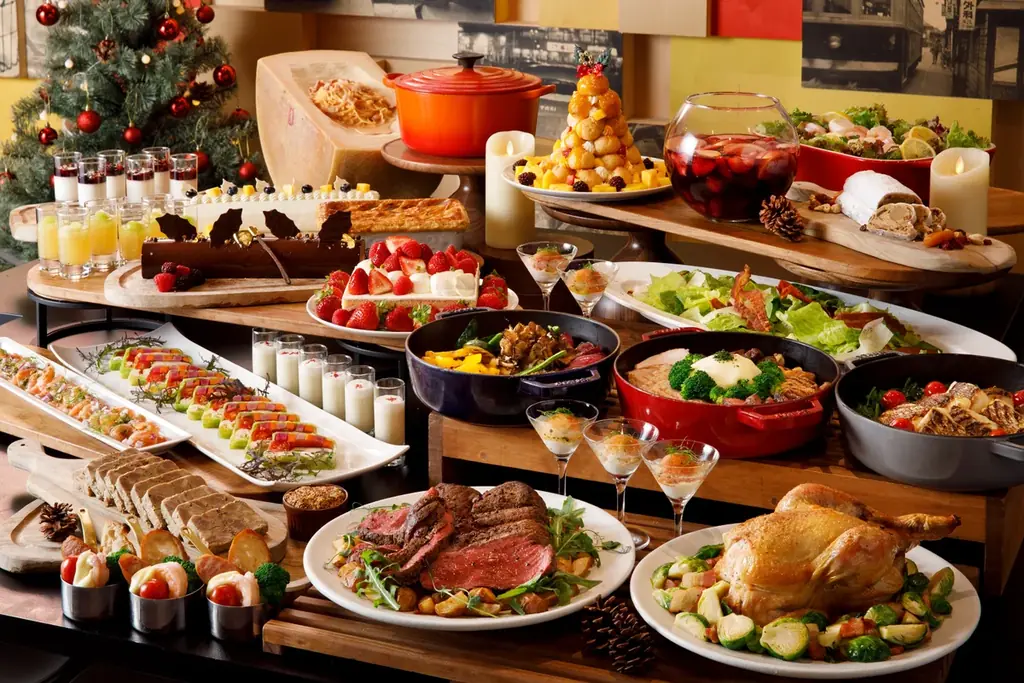 - デザート(コーナーおよびライブ):苺のショートケーキ / ブッシュドノエル(洋梨とストロベリーフロマージュ、チョコレートとキャラメル) / クランベリーゼリー / ティラミス / 洋梨のタルト / バームクーヘン・キャラメリゼ / ブレッドプティング / シュークリームツリー / フルーツサングリア / シュトーレン / 長野県産りんごのジュレ / パンナコッタ ミックスベリーコンポート / 熊本県産和栗の絞りたてモンブラン(デザートライブキッチン)