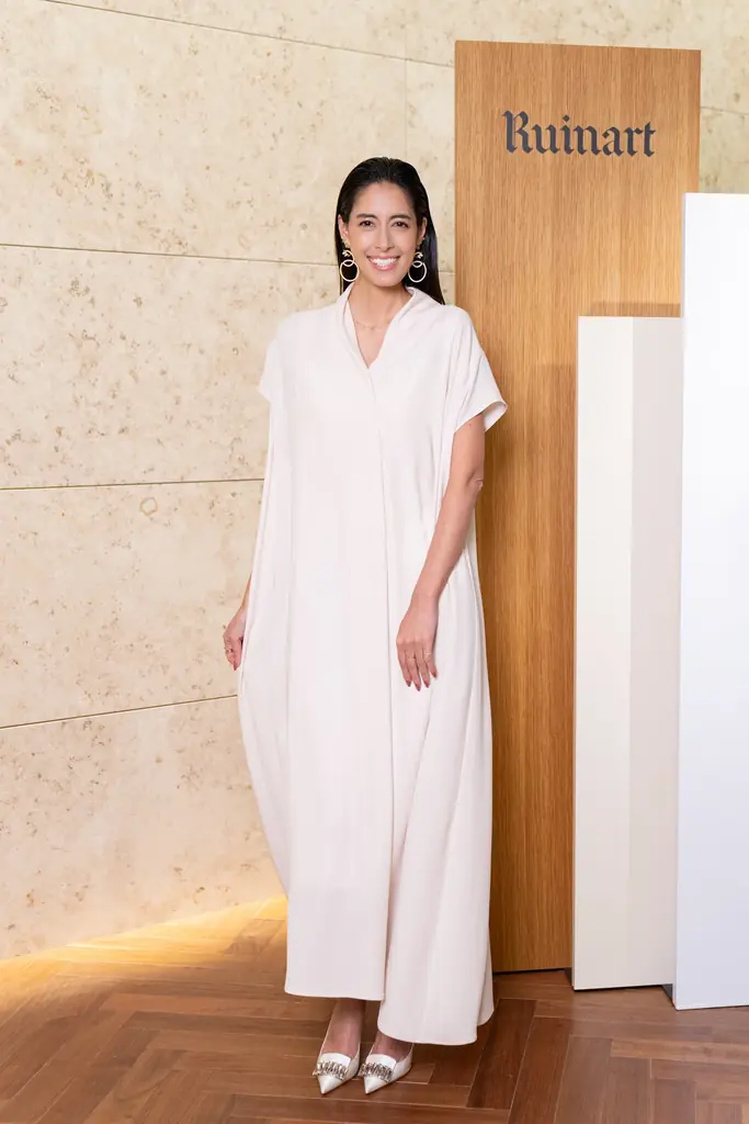 「大倉集古館の作品の表現は、あえてグレースケールに近い色合いで、色を排除して形だけで向き合う体験がすごく楽しかったです。今回の展示や写真を通じて、ルイナールというメゾンがいかにアートを大切にしているかを感じました。ルイナールのシャンパーニュは、フレッシュでありながらしっかりとしたボディがあり、その絶妙なバランスが魅力的です。この上品な味わいを、かしこまった場だけでなく、友人たちとカジュアルに、塩味のきいたおつまみと一緒に楽しみたいです。」