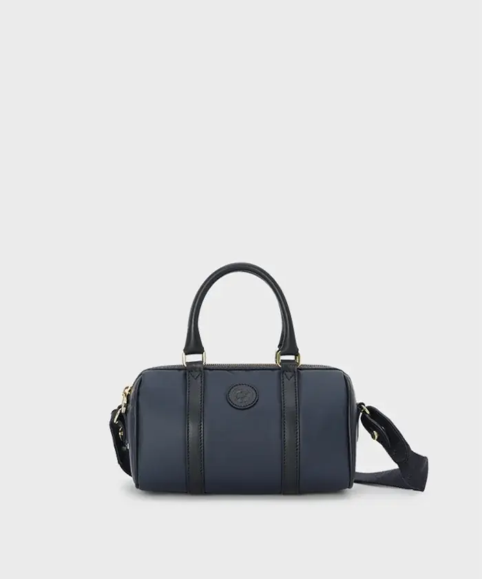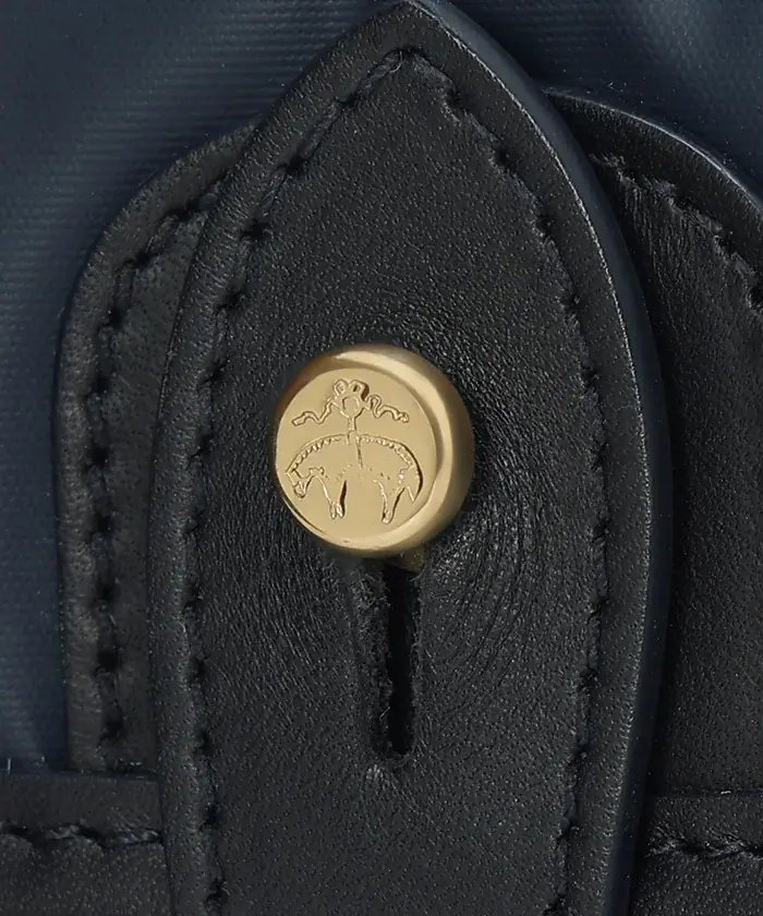 - ネイビーカラー統一:本体とレザートリムをネイビーで統一。