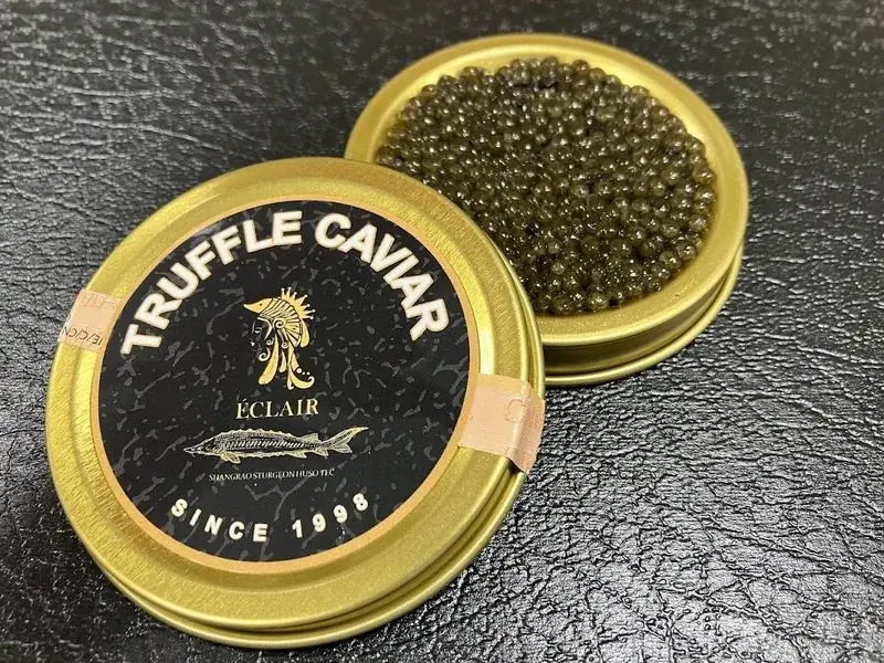 キャビアにトリュフペーストを配合し、トリュフの香りが付加された製品です。1つでキャビア本来の味わいとトリュフの風味、両方を楽しめる点が特長となっています。
