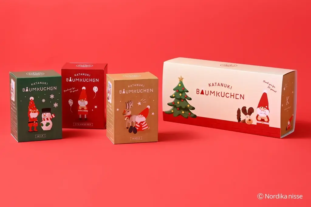 型ぬきバウムはミルク味、ストロベリー味、メープル味が各594円で販売される。3個セットは1,782円での提供となる。