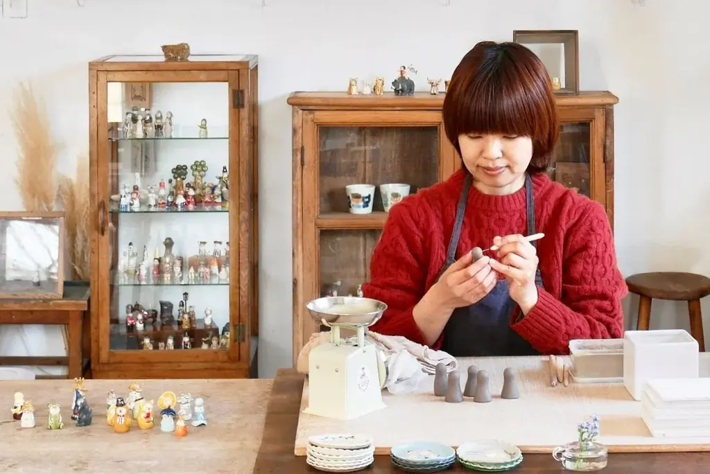うえのえみ氏は陶人形作家で高知県出身。岐阜県に移住し、山の中の工房で小さな陶器の人形をひとつひとつ手作りしている。自然に囲まれた環境で家族や動物と暮らしながら創作を続けており、作品は夢のような不思議さや心をくすぐる要素を大切にして作られている。個展やイベント出店を中心に国内外で活動中である。