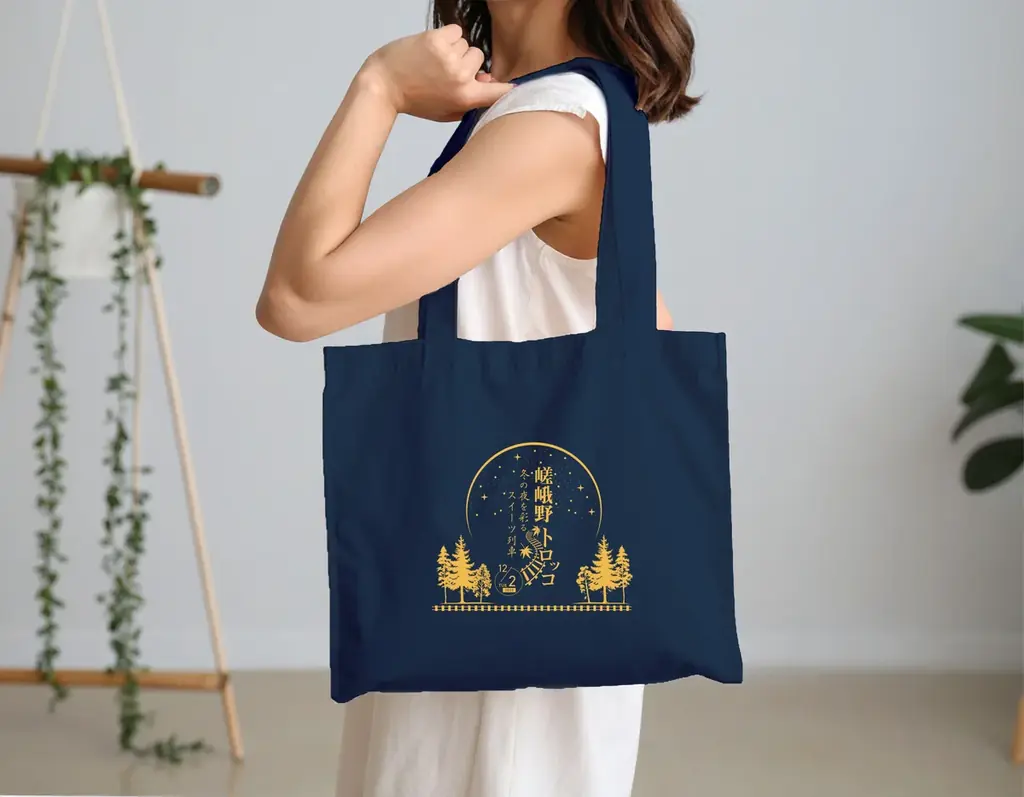 - 参加者全員に配布される限定デザインのエコバッグ。シンプルかつ上品なデザインで旅の記念と日常使いの両方に対応。
