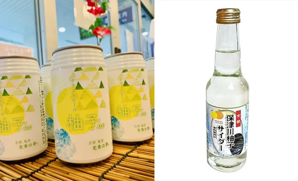 ドリンクはプランに応じてアルコールまたはノンアルコールが選べます。ゆずエール(アルコール)と保津川柚子サイダー(ノンアルコール)が提供され、いずれのプランにも限定オリジナルエコバッグが付帯します。