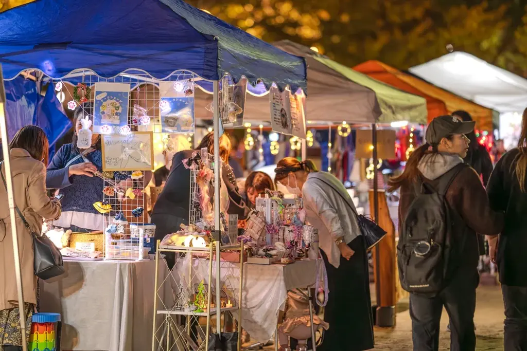 亀岡駅前では列車利用者向けにクラフトマーケットが展開されます。マーケットには地元や全国からクラフト作家が参加し、アクセサリー、雑貨、陶器、オリジナル小物など温かみのある手作りグッズが出品されます。旅の土産やギフトに適した一点物を探せる場として案内されています。