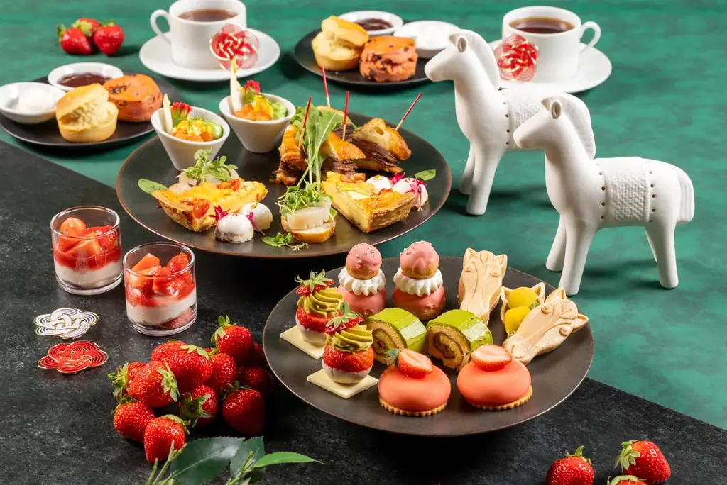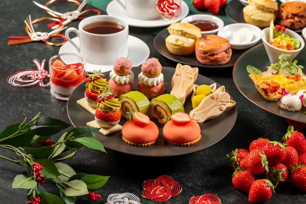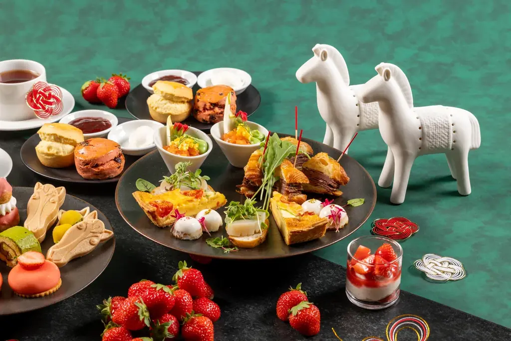 グランド ハイアット 東京のオールデイ ダイニング「フレンチ キッチン」は、2026年1月5日(月)から1月31日(土)までの期間限定で「ストロベリー&宇治抹茶 ニューイヤー アフタヌーンティー」を提供します。今回のアフタヌーンティーは、2026年の干支である「午(うま)」をモチーフにした和風の趣きを感じさせる菓子を中心に、いちごと宇治抹茶を主体としたスイーツを多数用意しています。