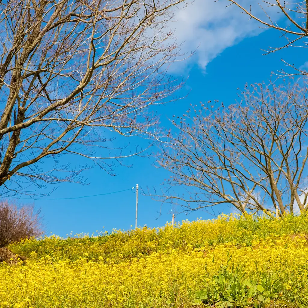 中山地区の「犬寄峠の黄色い丘」は春に菜の花が一面に咲き、秋にはアサギマダラが飛来するなど四季折々の自然が楽しめる場所として紹介されています。これらの風景は伊予市の食材が育まれる環境と結びついています。