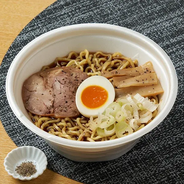 富山県からは、富山ブラックを広めた有名店「麺家いろは」監修のらーめんをラインナップ。醤油の風味と黒胡椒が効いたスープを、ちぢれ麺と合わせた商品です。