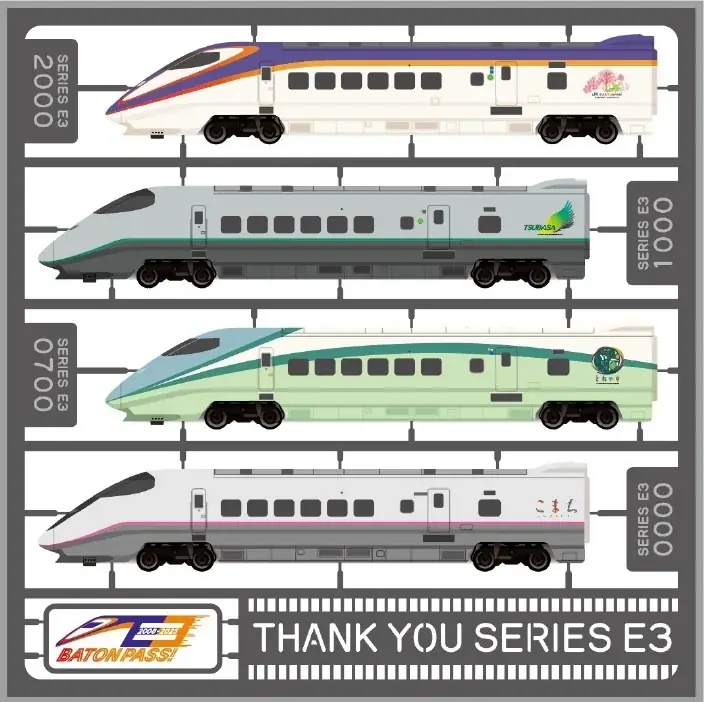 - 本体デザイン:E3系のシルバーからグレーのグラデーションを基調に、特徴的なグリーンを配した「SERIES E3」オリジナルデザイン