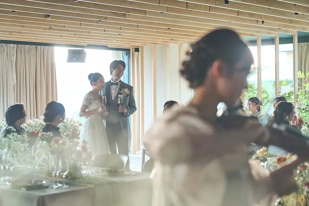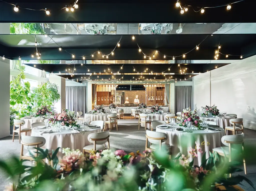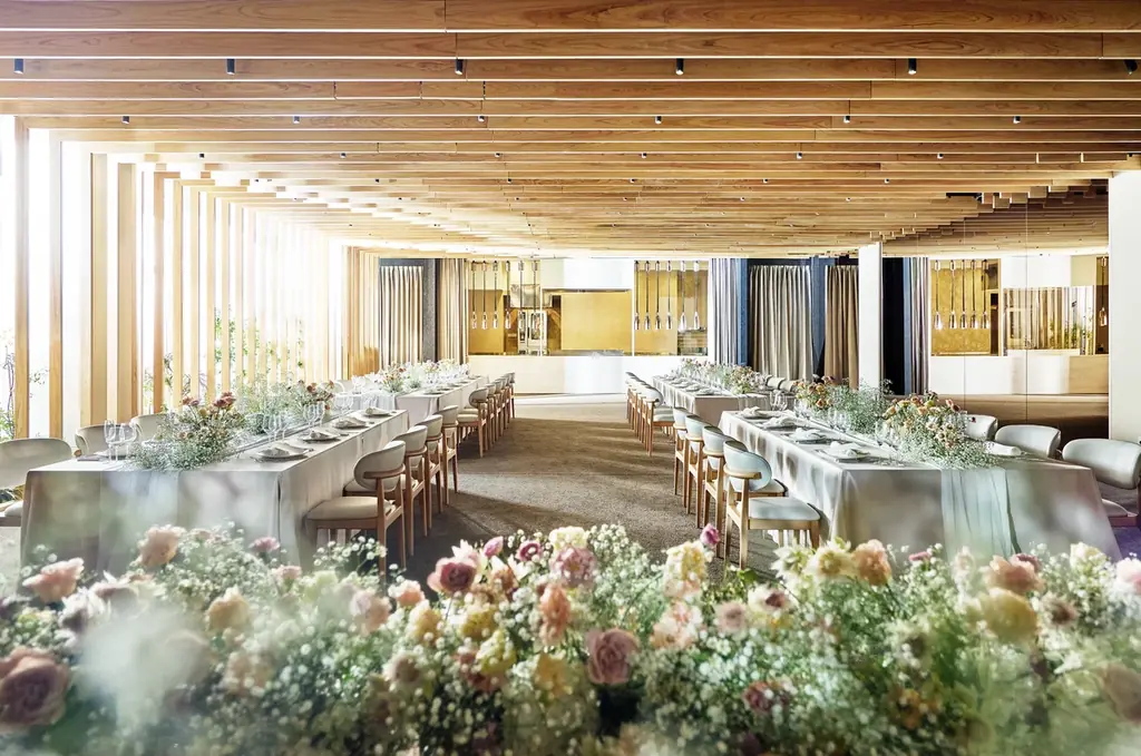 堅苦しさを抑えた設計は、現代のウエディングで求められる「おふたりらしさ」を演出する場として機能します。会話が弾みやすい配置や動線を考慮した側面もあり、来場者にとって記憶に残る披露宴を実現することを意図しています。