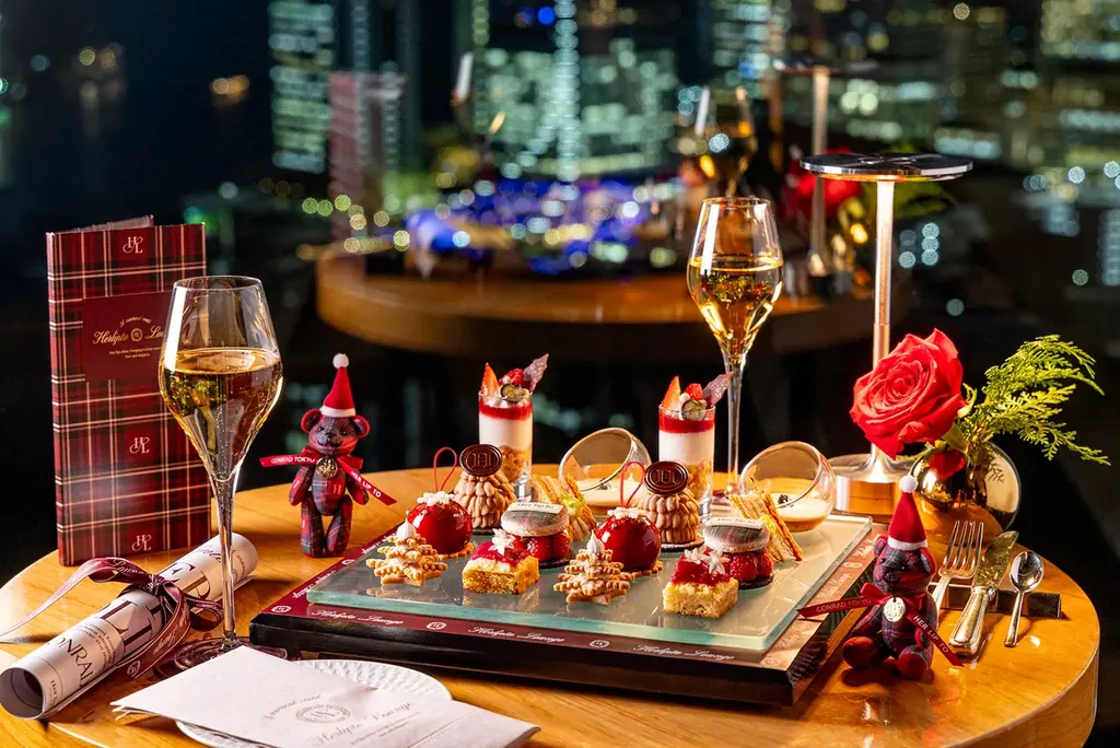 - フェスティブナイトティー:1名様 12,000円~(スパークリングワインのフリーフロー付き。追加3,000円でシャンパーニュに変更可能。コラボ限定ベア付きプランもあり)