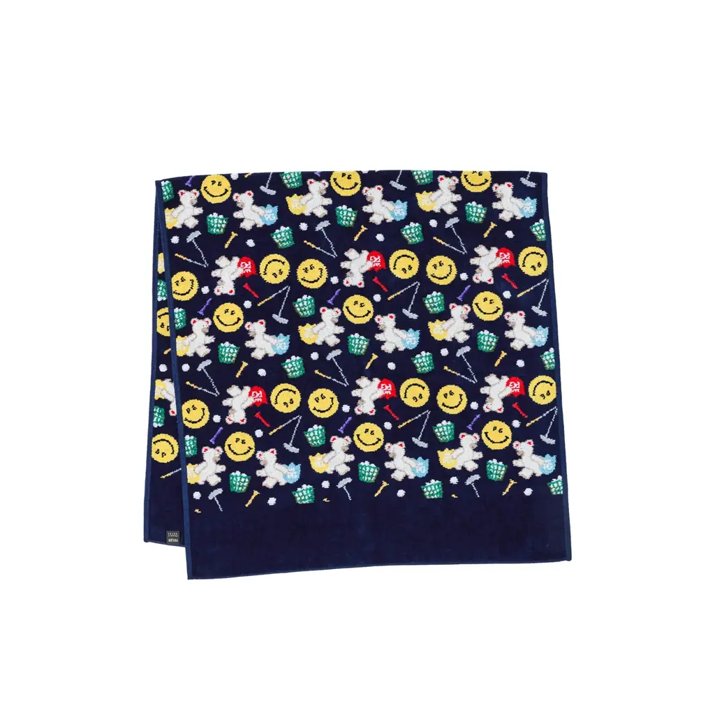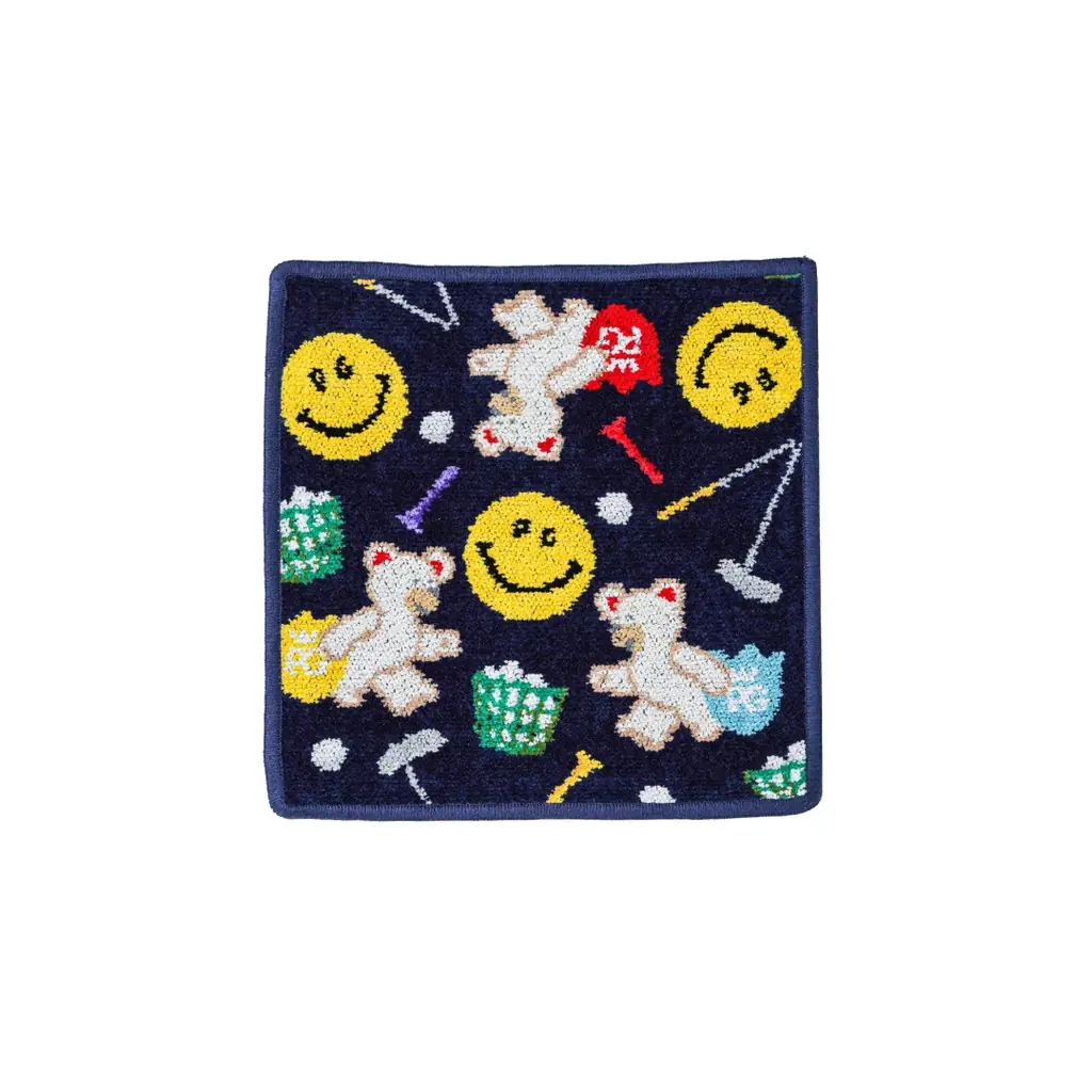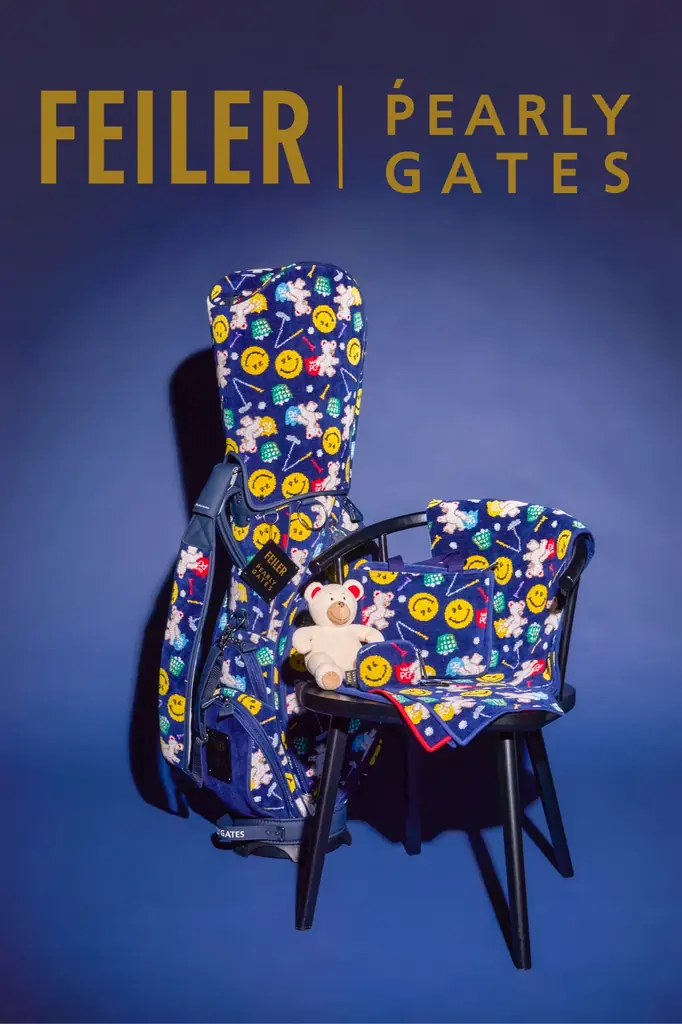 本コラボレーションは、フェイラーの代表的なシュニール織の質感と色彩表現を活かし、パーリーゲイツのアイコンであるPGニコちゃんと、PGエンブレムを持ったフェイラー公式キャラクターFEILER Bear(リーベくん)を組み合わせたオリジナルデザインを展開します。遊び心のあるモチーフや、パタークラブを“ポッキリと折ってしまった”ようなユニークな表現も取り入れられています。