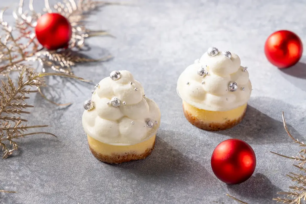 - ツリーフロマージュ:ベイクドチーズケーキにマスカルポーネクリームを絞り、クリスマスツリーのような装いで提供します。