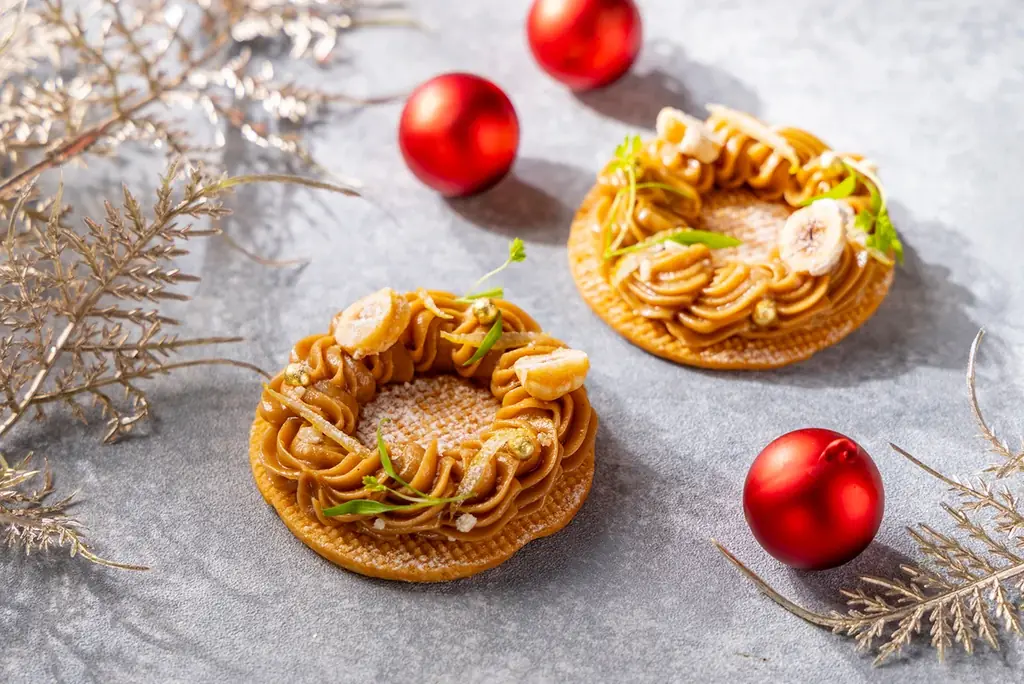 今回のアフタヌーンティーは、世界中で親しまれるクリスマスモチーフをテーマにした7種のスイーツと日替わりセイボリーを組み合わせて提供されます。個々のスイーツは細部まで趣向を凝らしており、伝統的な味わいとホテルならではの洗練を両立させています。