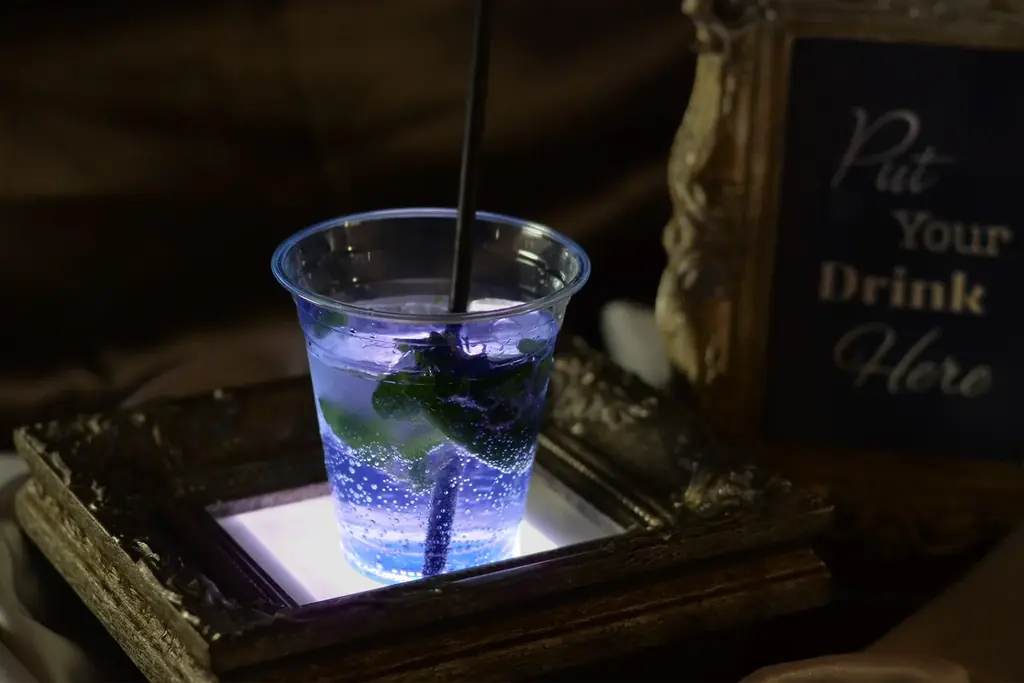 - 特徴:ハーブとライム香る透明のモヒート風ドリンク。特設スポットに置くと青く発光する演出が発生し、視覚的な変化を楽しめます。