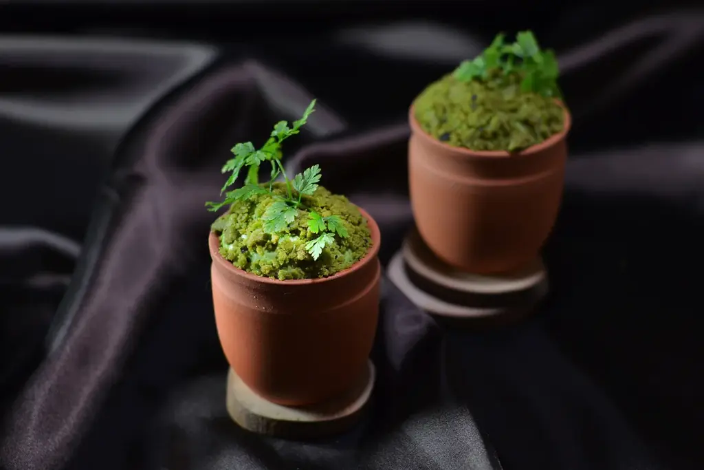 - 特徴:抹茶プリンと小倉ムースの層構造。陶器の器入りで、食後の器は持ち帰り可能。見た目は苔のようで和の雰囲気を持つ。