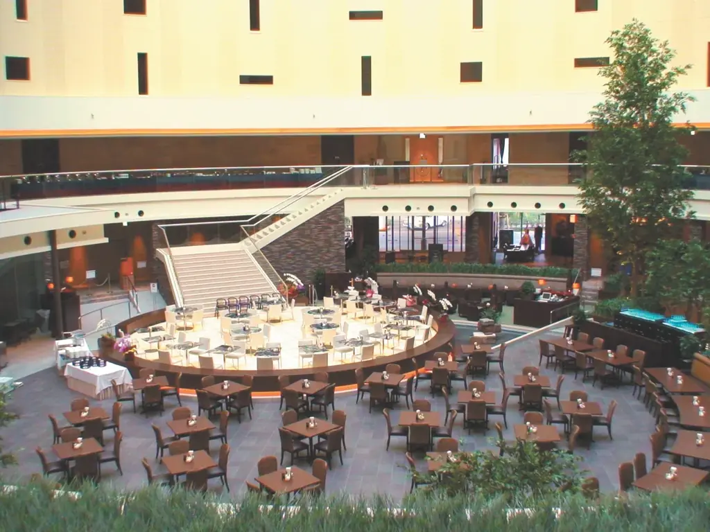 会場となるレストラン ファインテラスは、ホテル内の11層吹き抜けのアトリウムに面した位置にあります。開放感のある空間設計は幅広い年代が利用しやすい雰囲気です。