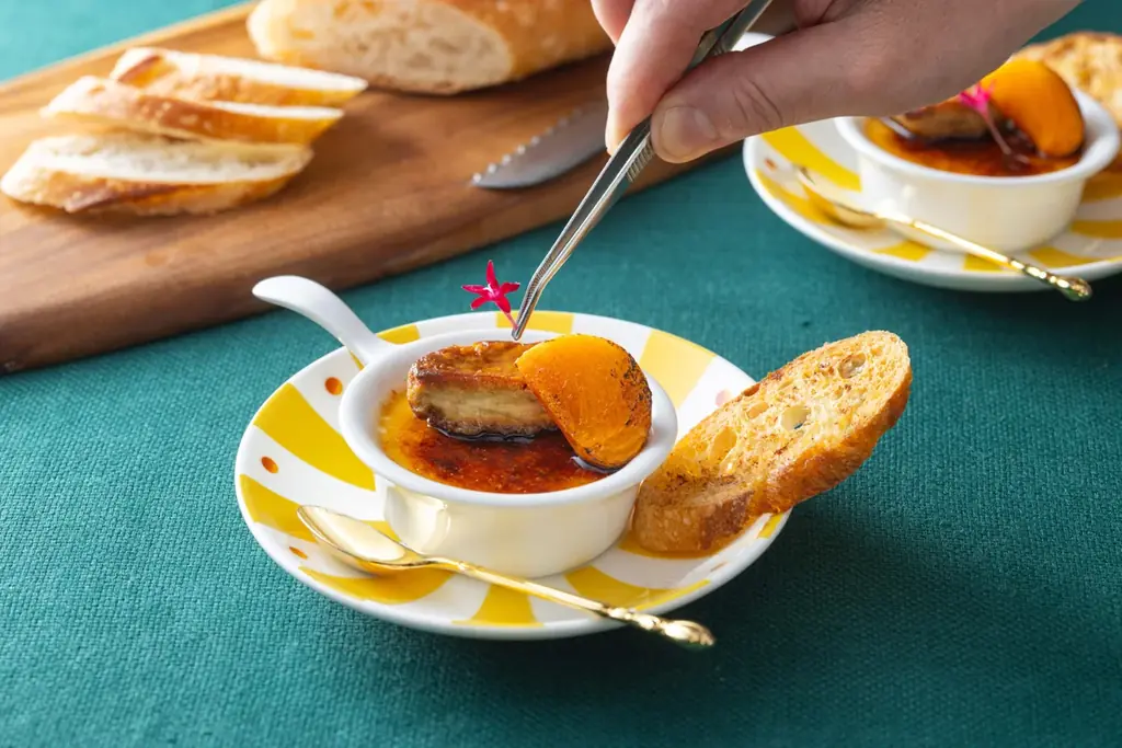 - スペシャルディッシュ(土日および12/20・23〜25限定): フォワグラと柿のソテーをのせたブリュレ(大人のみお一人さま1皿)