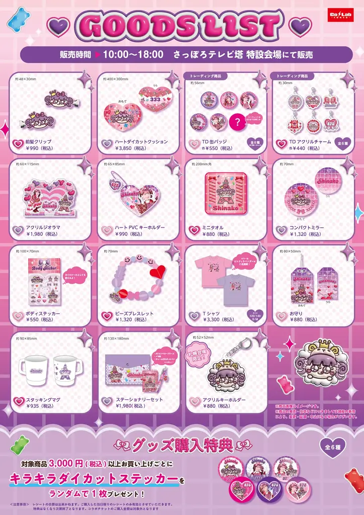 | 物販特典 | 1会計3,000円(税込)ごとにキラキラ大カットステッカー1枚 |