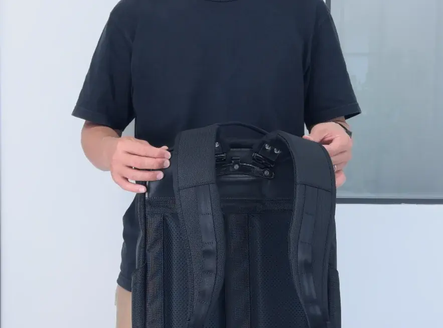 背板は柔軟性と剛性のバランスを取る設計で、持ち物の偏りにも対応するため、長時間の移動や出張時にも姿勢維持に役立ちます。