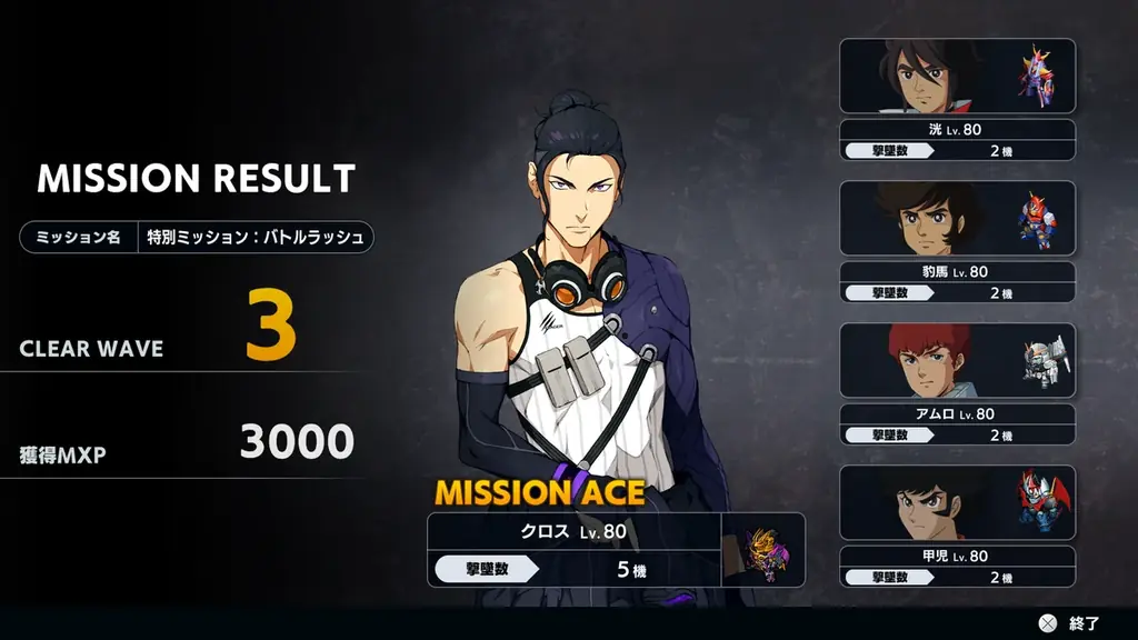 バトルラッシュはWAVE構成で進行し、初回クリア報酬として強力な強化パーツやCREDITが得られる場合があり、繰り返し挑戦することで大量のMXPを獲得可能です。全10WAVEを制覇することが想定された高難度コンテンツです。