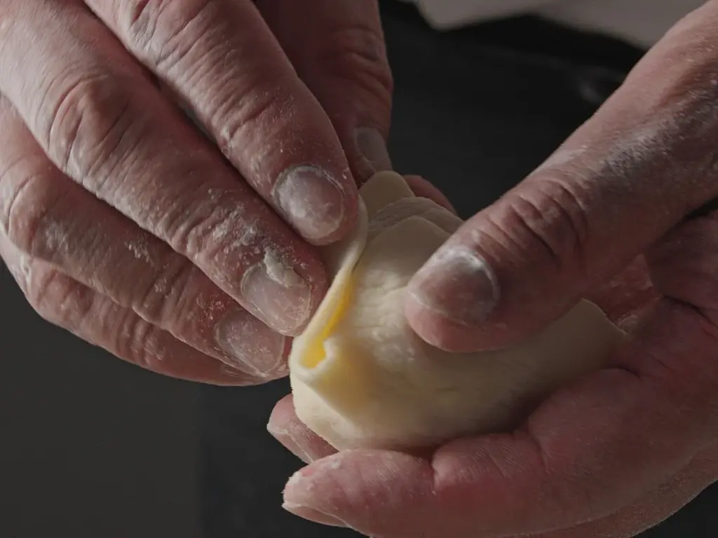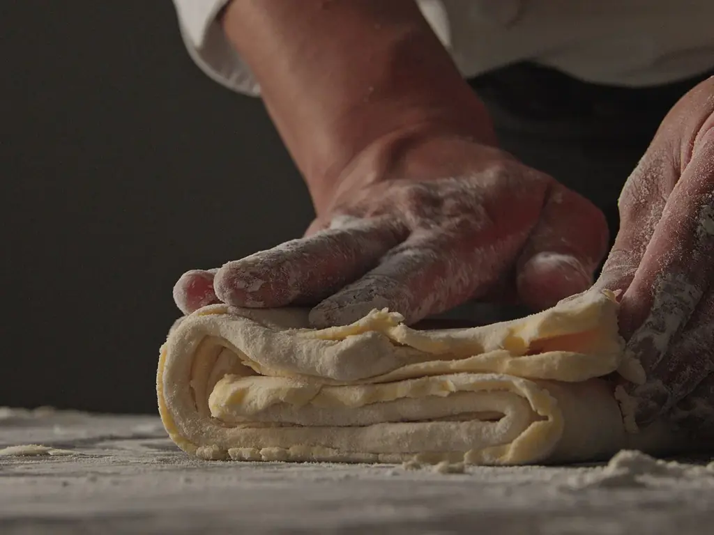 - 製法: フィユタージュアンヴェルセ(逆折り込みパイ)を用いた包み込み製法