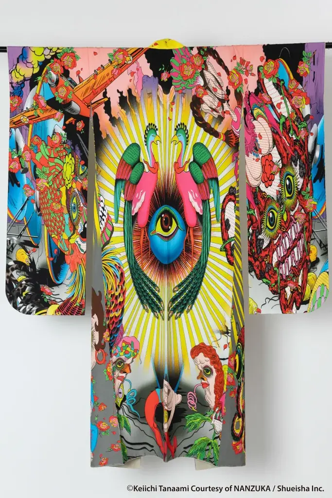 展示の会場は大丸京都店1階案内所前特設スペースで、会期は2025年11月12日から11月25日まで、営業時間は毎日10時から20時です。地下ウィンドウでは田名網敬一の Tanaami kimono Collection を展示・受注販売しています。紹介されている着物は田名網がデザインしたものを集英社マンガアートヘリテージで仕立てた数点です。