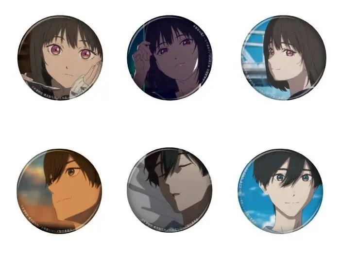 アクリル系の小物やバッジ、ステッカー類はキャラクター単位の全2種仕様が基本です。これに加えて、ブリキ製の缶バッジやクリアカードにはランダム封入の全6種セットがあり、単品購入とセット購入の両方が選べます。