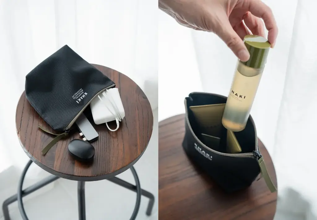 - ポーチ(20cm×16cm×7cm、防水仕様、再生ポリエステル素材)