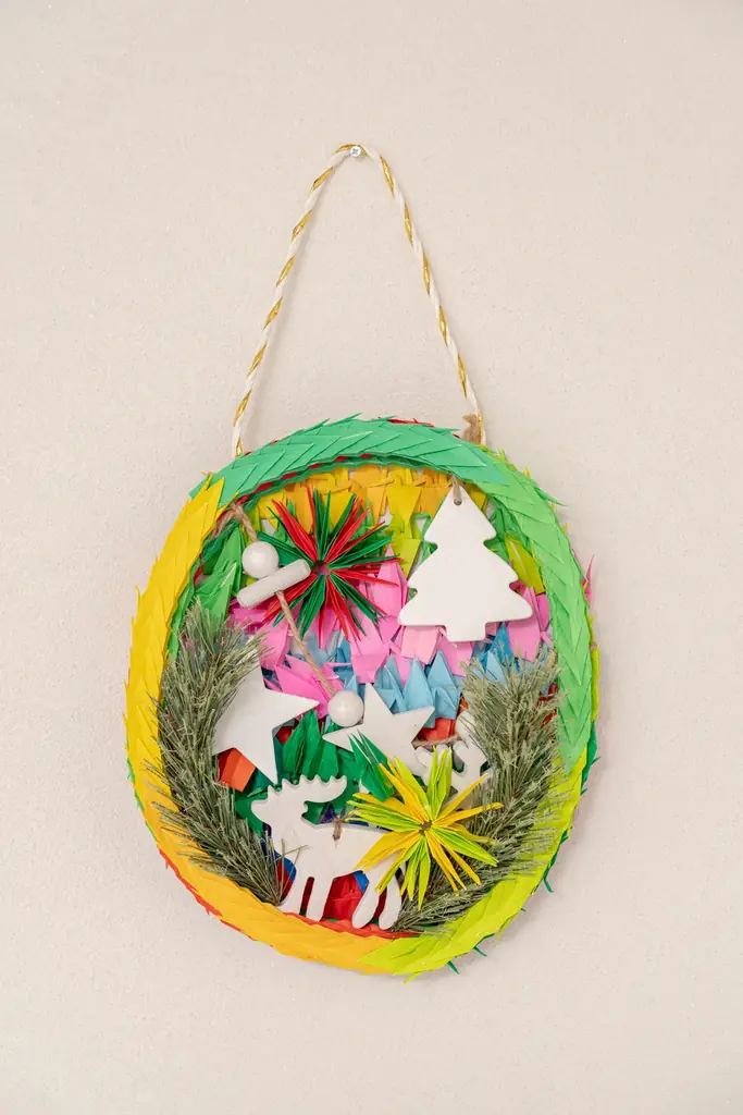 TCB東京中央美容外科のスタッフ有志が制作した13点で、テーマは「平和」「愛」「絆」。折り鶴を素材にした色鮮やかなクリスマスリースが中心です。