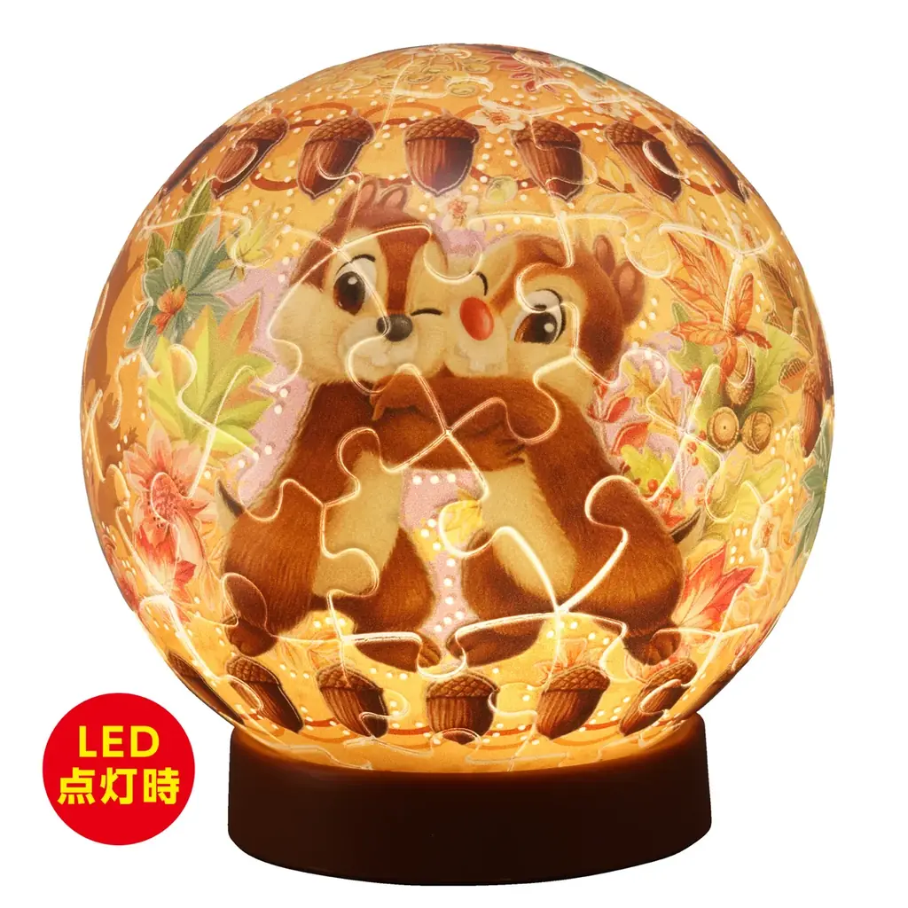 ルミオーブは61ピースを組み上げる3D球体ジグソーパズルで、組み立て後に付属の台座に置くと内蔵のLEDユニットにより球体が発光します。直径約7.6cmの手のひらサイズながら、暗所では独特の光の演出を楽しめる点が特徴で、ジグソーパズルとしての組み立ての楽しさ、インテリアとしての見栄え、ライトアップによる癒しの要素を兼ね備えています。