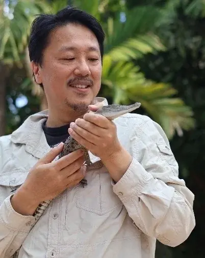 オーストラリア・ノーザンテリトリー政府職員、国際自然保護連合・ワニ類専門家グループ オーストラリア地区副代表。若年でノーザンテリトリーに移住以来、イリエワニとジョンストンワニ(オーストラリアワニ)の研究に従事。野生個体群調査、頭数モデリング、人間社会との軋轢防除、遺伝子解析を専門とする。撮影活動も行い、新著に『クロコダイルに魅せられて』(みすず書房)などがある。